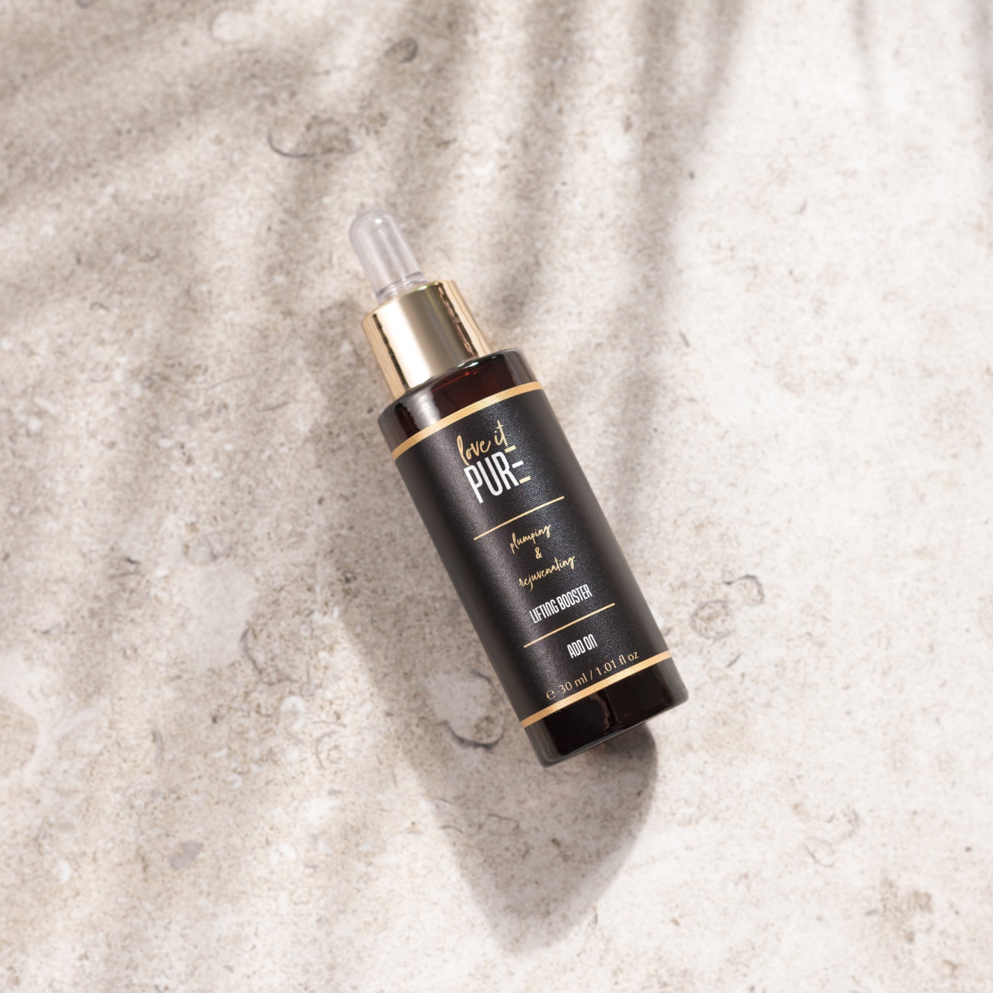 Der Lifting Booster ist das High-Performance Add On zur Basic Care, wenn dein Hautbedürfnis sichtbare Faltenreduktion, intensive Durchfeuchtung und ein aufgepolstertes Hautbild ist. Du integrierst ihn in deine bestehende Love it Pure Routine, ohne Produkte zu wechseln und ohne die Struktur zu verändern.