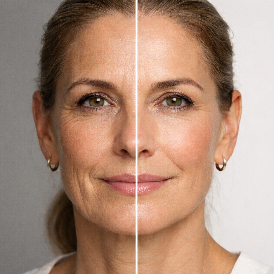 Mit zunehmendem Alter, durch UV-Strahlung, oxidativen Stress, hormonelle Veränderungen und Umweltbelastungen verlangsamt sich die Produktion von Kollagen und körpereigener Hyaluronsäure. Gleichzeitig nimmt die Fähigkeit der Haut ab, Feuchtigkeit zu speichern. Wird zusätzlich die Hautbarriere geschwächt, geht Feuchtigkeit schneller verloren. Die Folge: Die Haut verliert an Volumen, wirkt weniger prall, Linien vertiefen sich und Falten werden sichtbarer. Wiederholte Mimikbewegungen hinterlassen mit der Zeit ebenfalls Spuren im Gewebe. Oxidativer Stress beschleunigt diese Prozesse zusätzlich und begünstigt vorzeitige Hautalterung auf Zellebene.