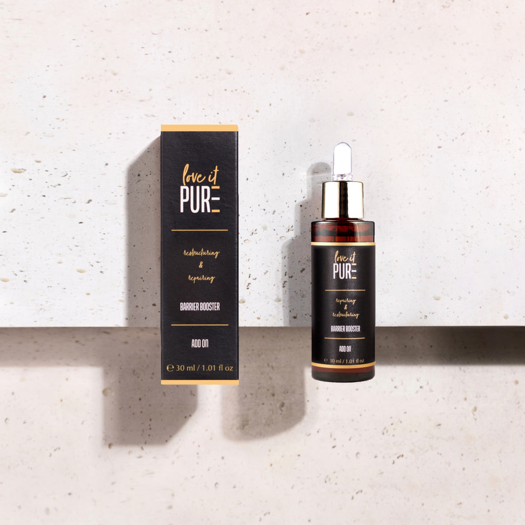 Der Barrier Booster ergänzt das Pflegekonzept ideal – er wirkt wie ein Reparatur-Elixier für geschwächte, gereizte oder entzündungsanfällige Haut. Mit hauteigenen Ceramiden, die wie flüssiger Hautschutz wirken, unterstützt er gezielt den Wiederaufbau der natürlichen Schutzbarriere. Ceramide schließen Lücken im Lipidfilm, helfen der Haut, Feuchtigkeit zu binden, und schützen vor Reizstoffen. Zusätzlich enthält der Booster Süßholzwurzelextrakt, der Juckreiz spürbar lindern kann, sowie Cica (Centella Asiatica) und Ectoin – zwei hochwirksame Wirkstoffe, die entzündungshemmend, reparierend und hautberuhigend wirken. So wird die Haut in ihrer Regeneration effektiv unterstützt, gestärkt und ins Gleichgewicht gebracht – selbst in besonders sensiblen Phasen oder nach Belastungen wie einer Kortisontherapie. Gerade bei geschwächter, gereizter oder durch Medikamente belasteter Haut unterstützt der Barrier Booster gezielt die Wiederherstellung einer gesunden Hautstruktur.
